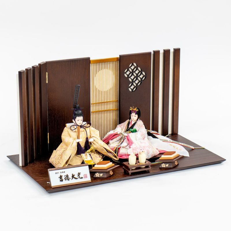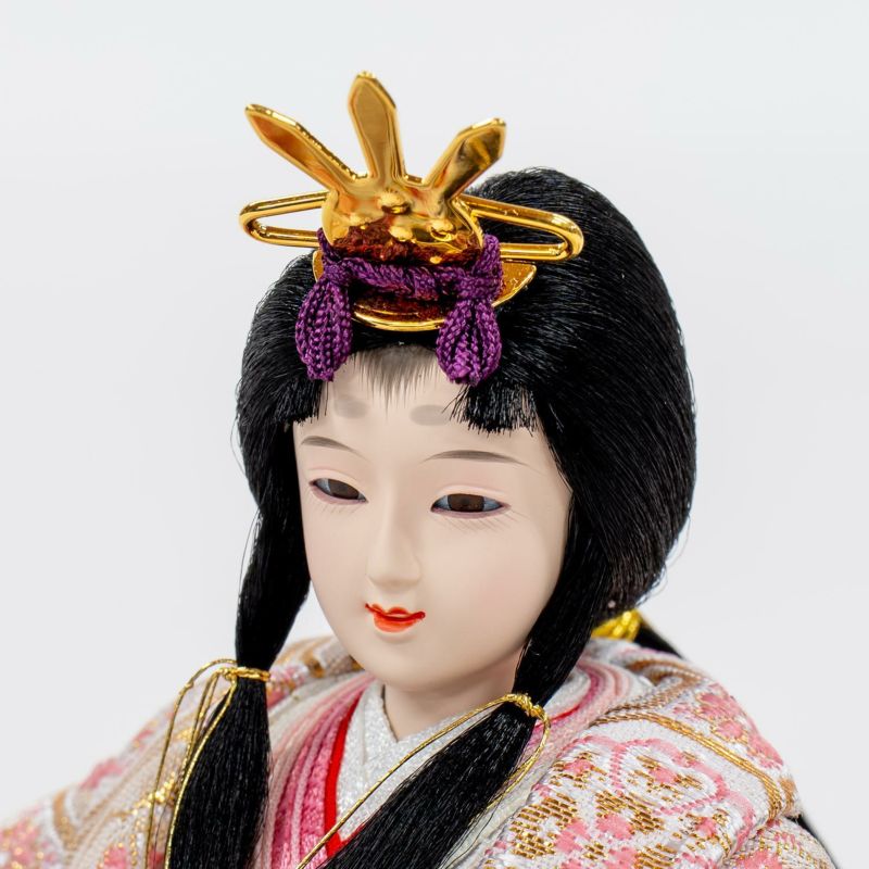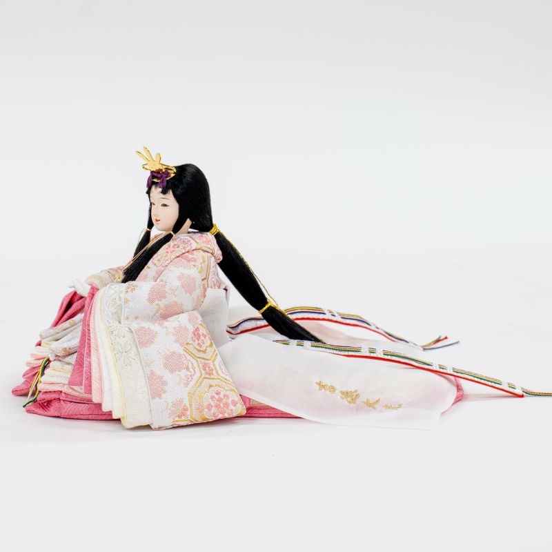 女雛の裾の長い衣裳と長く美しい髪が印象的な親王飾りです。