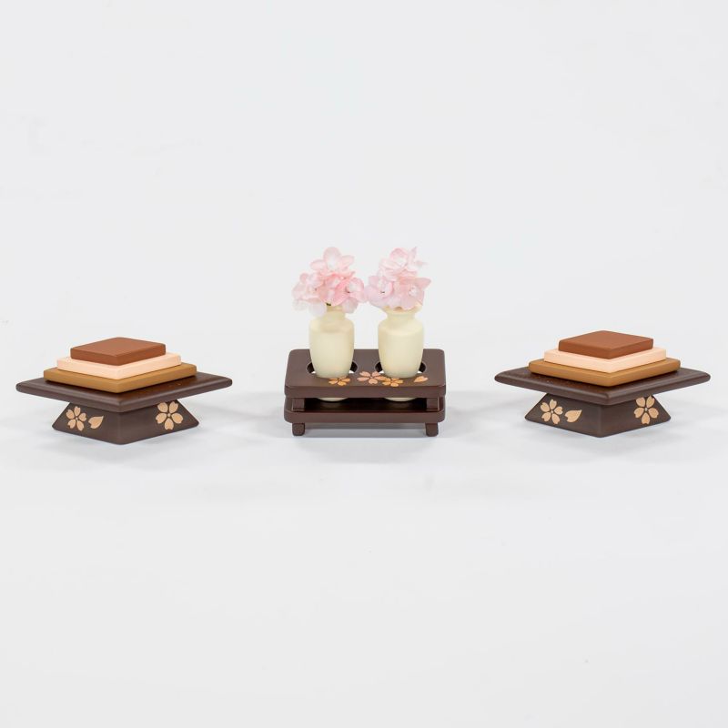 ■全体の色合いにあわせた桜柄のシックなお道具をセット。
