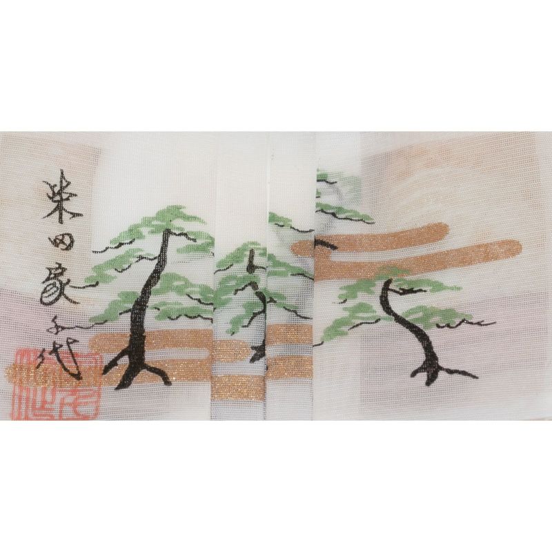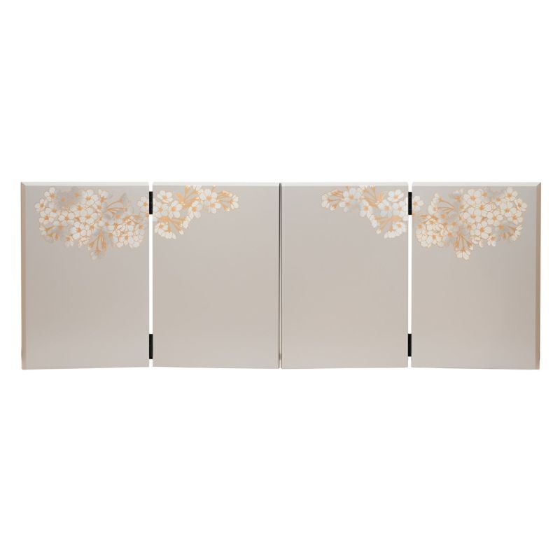 ■くすみがかった色合いの屏風には、満開の桜を金彩で描きました。