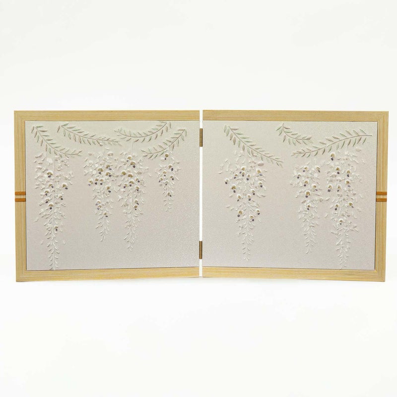 ■二曲の屏風には「藤の花」を刺繍しました。