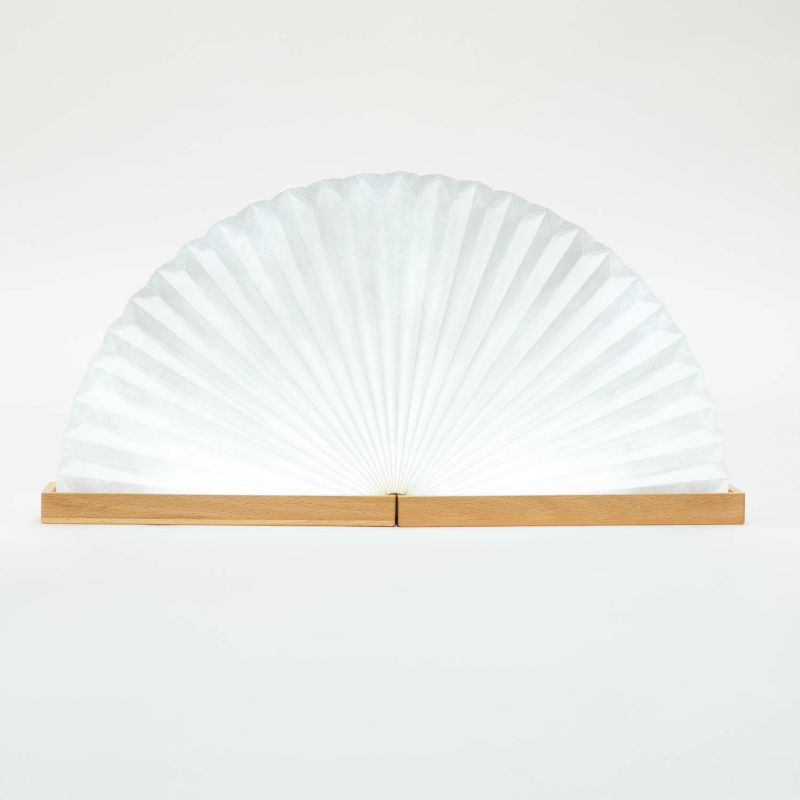 ■扇型屏風はアコーディオンのように折りたたむことが出来、スイッチを押すと数色の色に変わります。