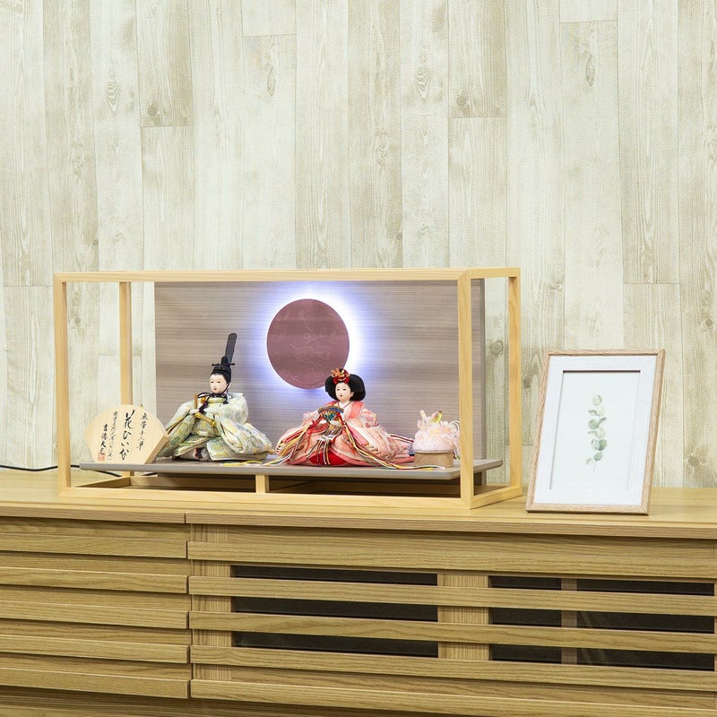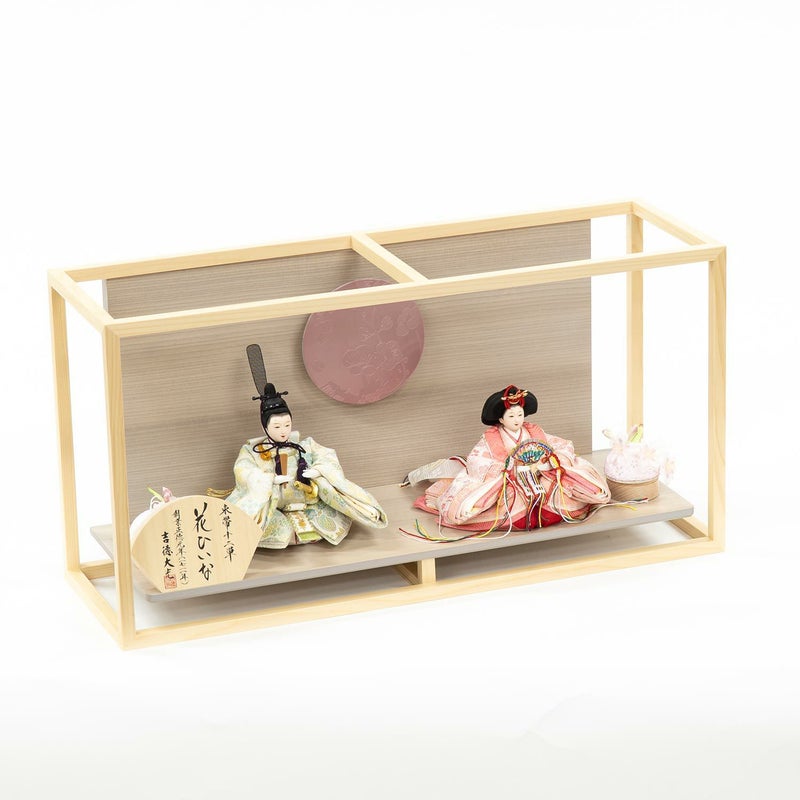 舞台のような飾り台に、おひな様をお飾り頂く親王飾りです。