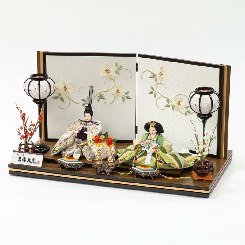 お人形と屏風の若々しい色合いが新しい季節の到来を感じさせる親王飾りです。