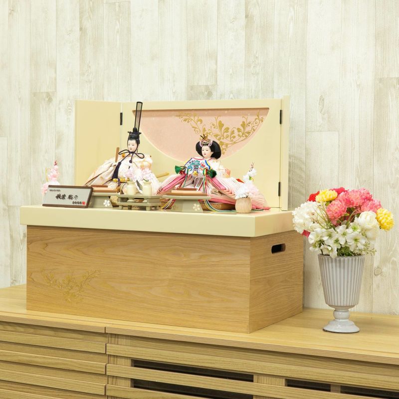 春の訪れが楽しみな親王収納箱飾りです。
