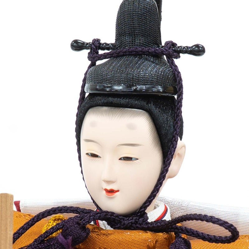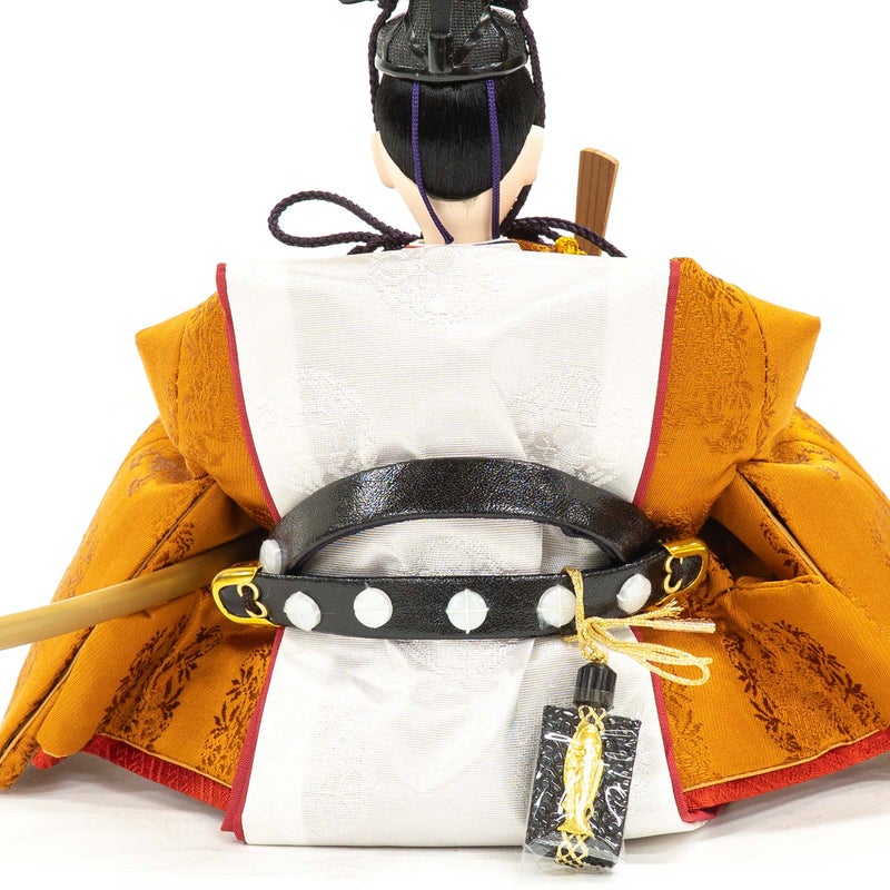 ■男雛は天皇陛下のみ着用できる”黄櫨染御袍(こうろぜんもごほう)”を着せ付け。