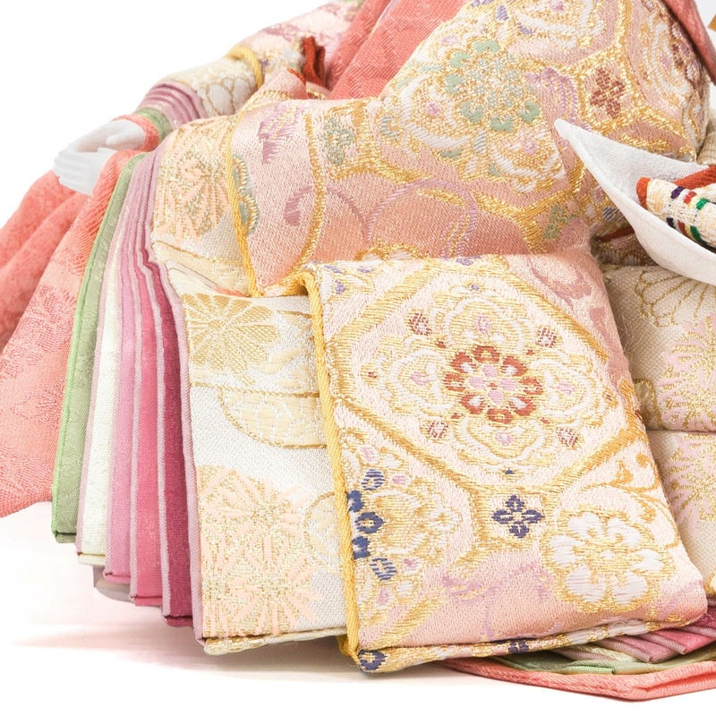 お雛さまの完成美を高めるために、生地の良さを活かし色柄のバランスと調和を図り、そして寸法を整え仕上がりの完成度高めます。
