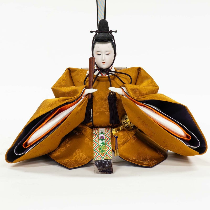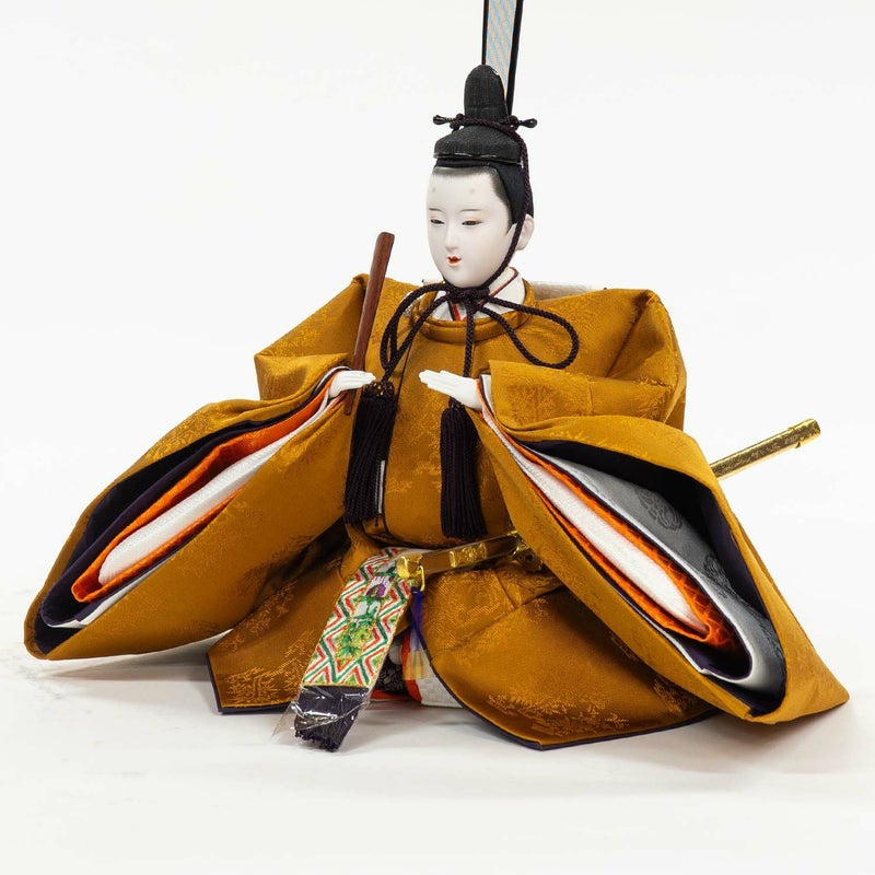 ■男雛には天皇陛下のみ着用される由緒ある黄櫨染の衣裳を着せ付けました。