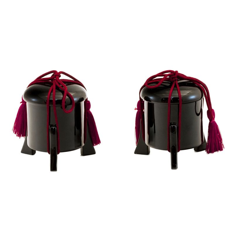 ■雛道具にはシンプルな黒塗の貝桶をセット。
