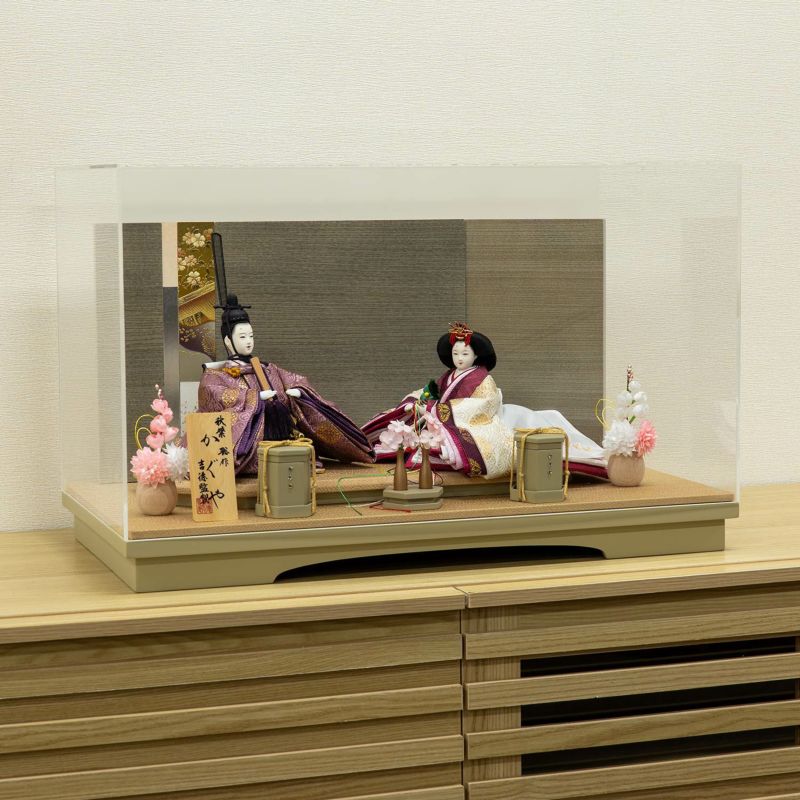 ■背景の屏風は固定されておりますので、アクリルカバーを外せば親王飾りのようにお飾りもできます。