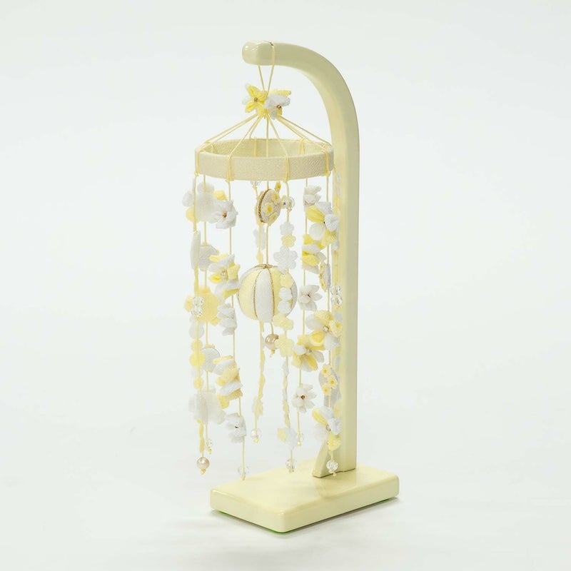 全体をアイボリーでまとめた吊るし飾りです。木目調の落ち着いたセットにも塗の華やかなセットにも調和する吊るし飾りです。