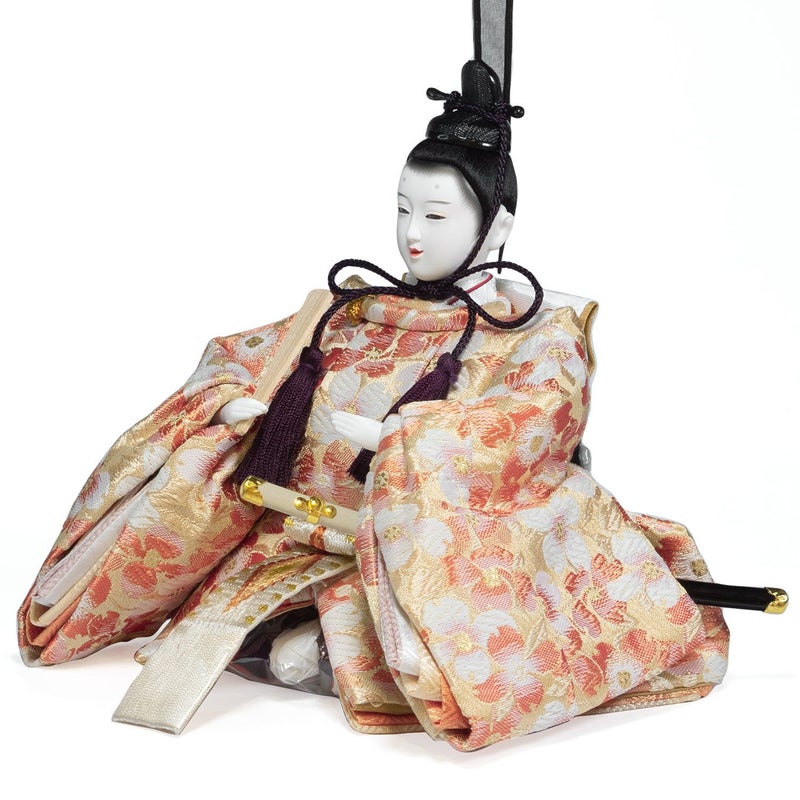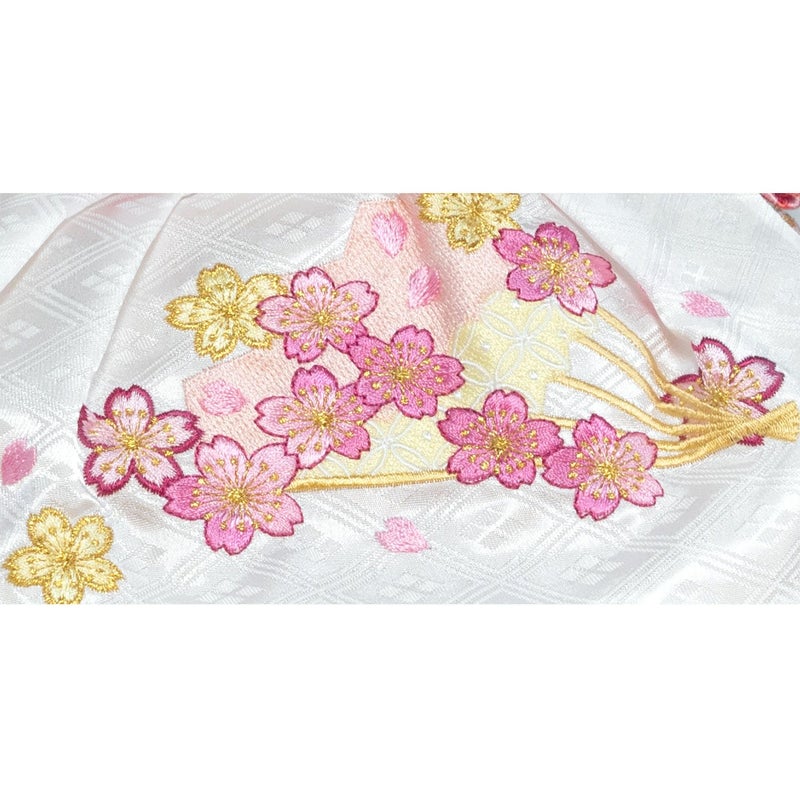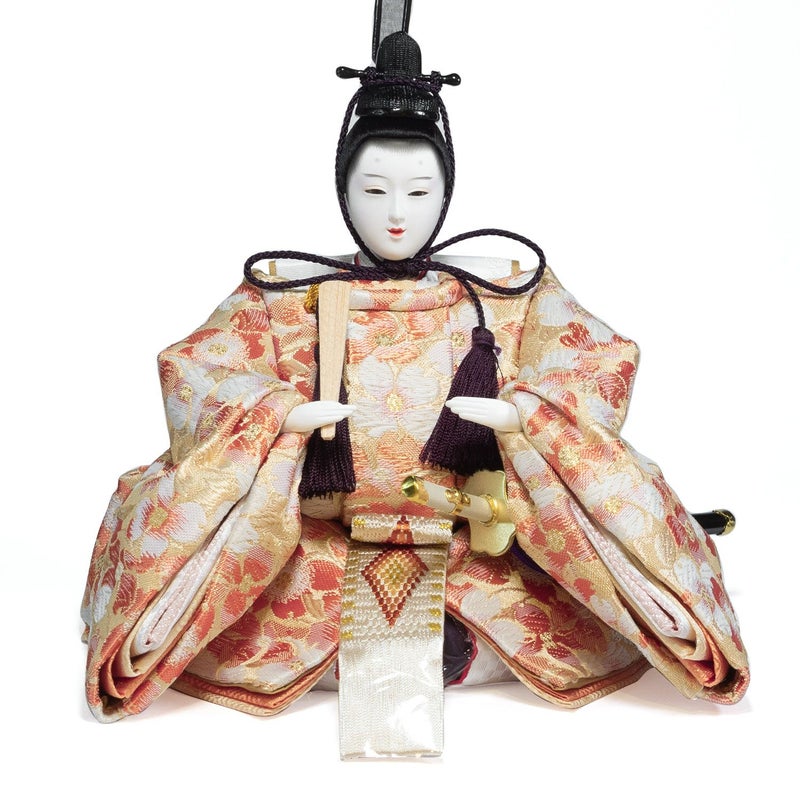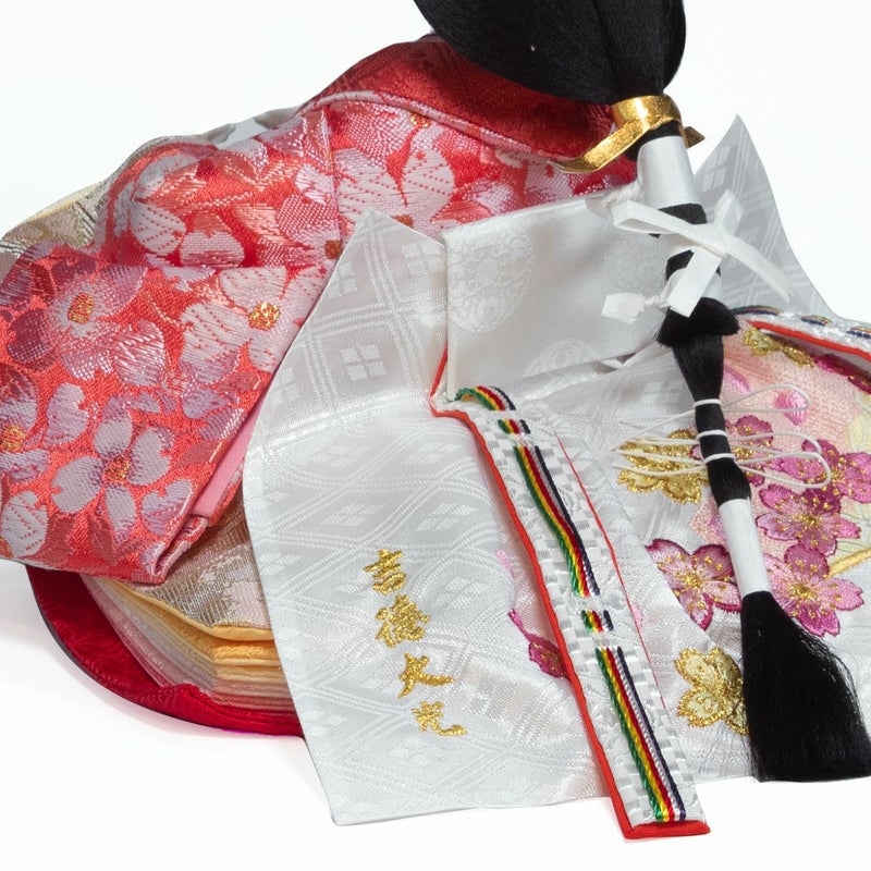 ■女雛の裳には愛らしい「扇に桜」を刺繍。