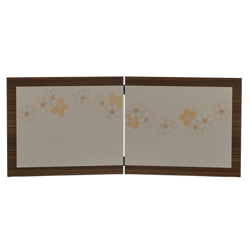 花柄の木目の屏風が、可愛らしさあふれるお人形を引き立てます。