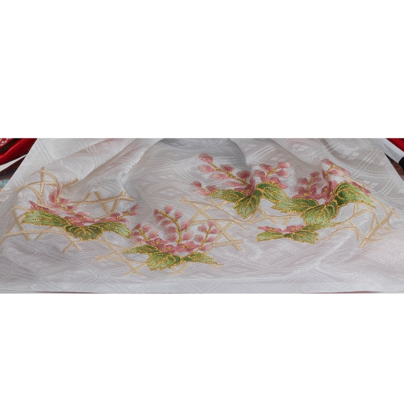 ■女雛には色鮮やかな赤色に木瓜に八葉菊柄の衣裳を着せ付けました。