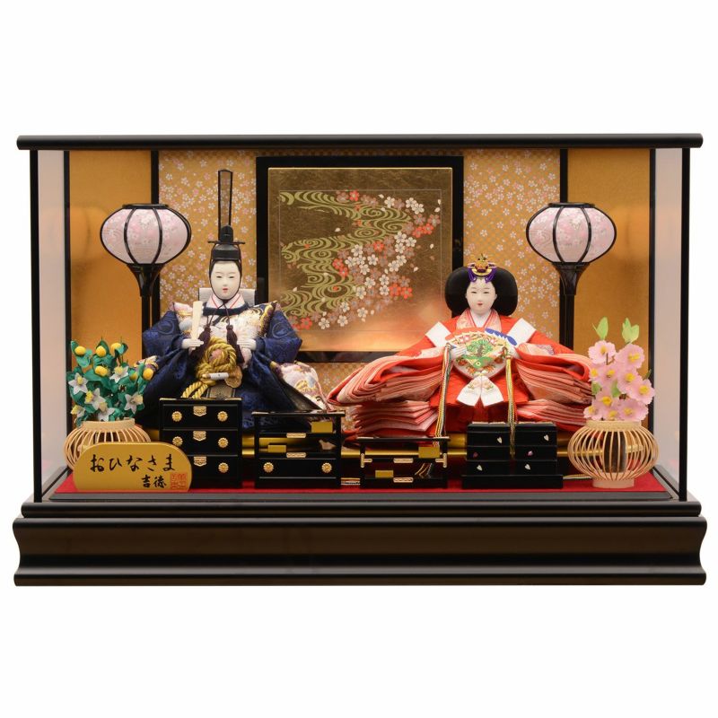 前面を広くし後面を絞った形状をした六角ケール入り親王飾りです。この形状にすることで、セット飾りのような屏風にお人形が囲まれているかのようです。お道具にもこだわり、全て高岡塗で仕上げました。全体的に高級感漂うケース飾りとなりました。ケース商品は梱包されていた箱から出してすぐにお飾りいただけます。