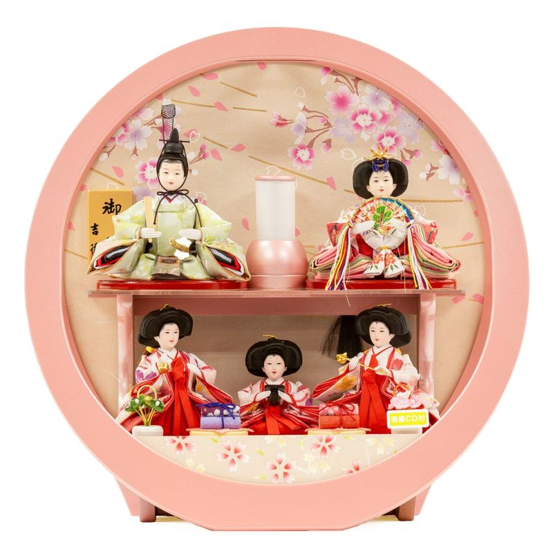 ピンク色の丸型が可愛らしいケース入り雛人形です。