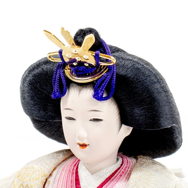 有職文様の一つ「臥蝶丸文様」の優美な雰囲気を醸し出している「江都みやび親王飾り」です。