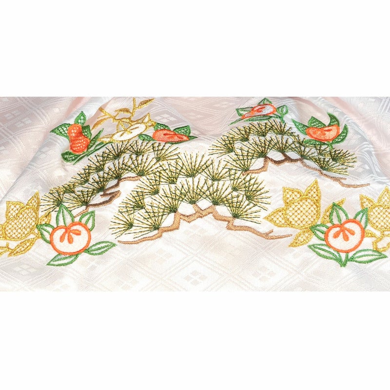 ■女雛の裳には松と橙を刺繍。橙は「代々」に通じることから縁起がよいとされています。