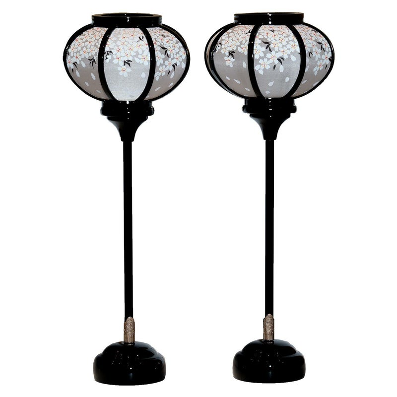 ■雪洞は、桜の花を描いたコードレスの電池式で、明かりがともります。
