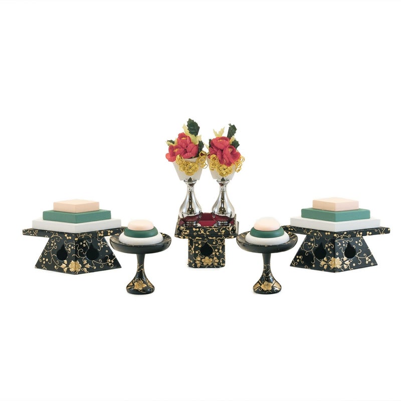 ■子孫繁栄の意味もある唐草を描いたお道具をセット。