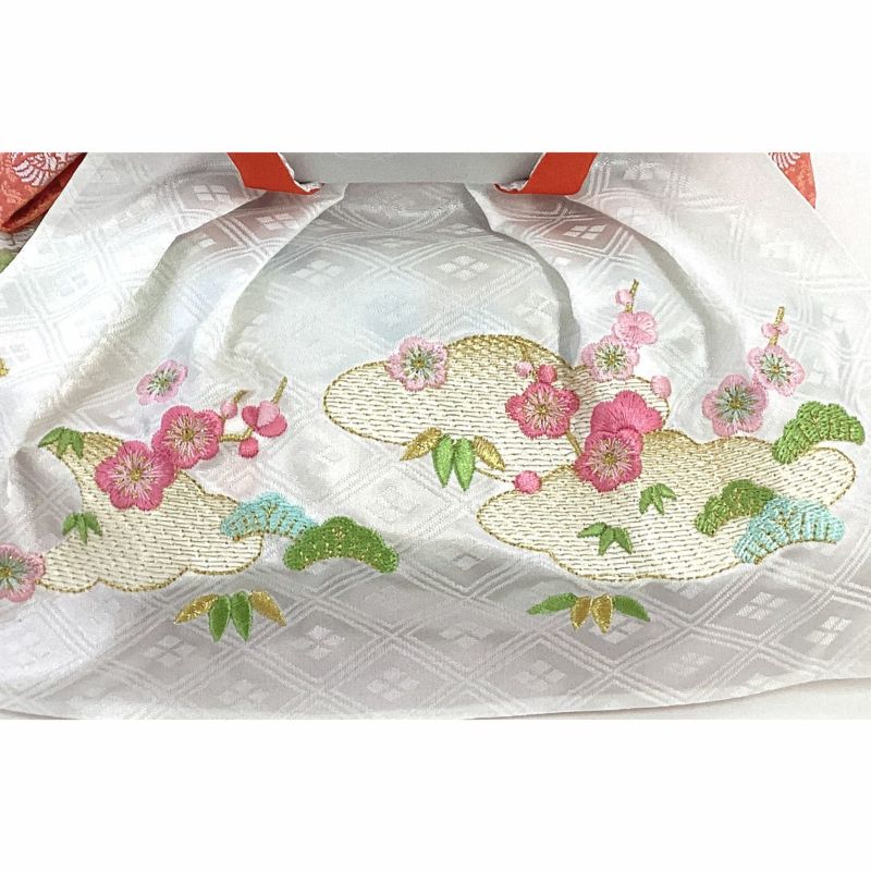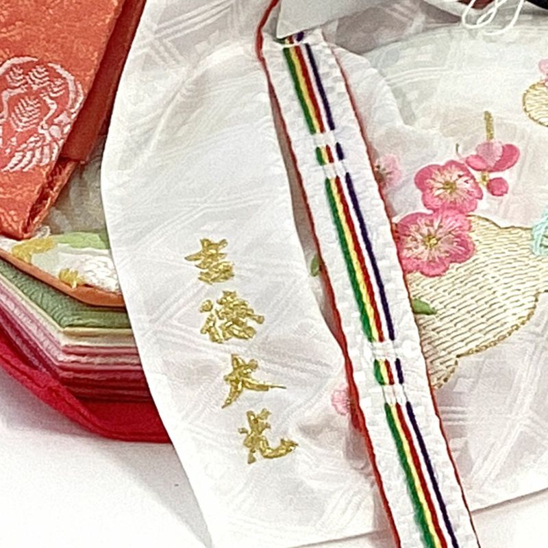 女雛の裳袴に“吉德大光”の文字を刺繍で施しました。見えない部分にもこだわりをもったお人形です。