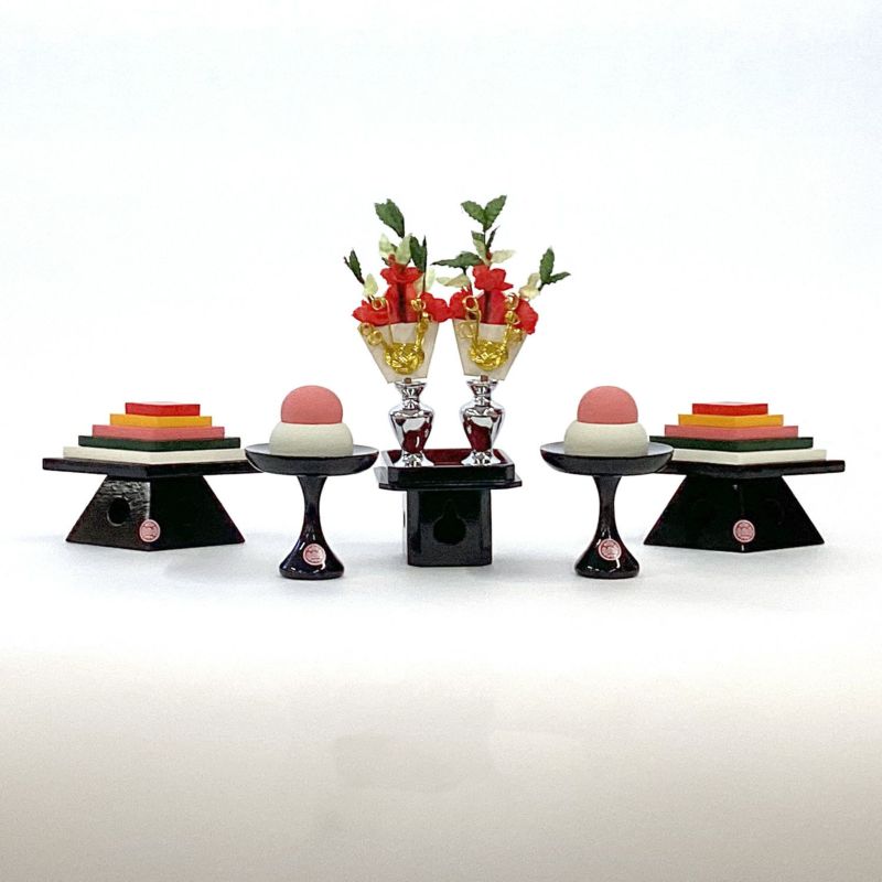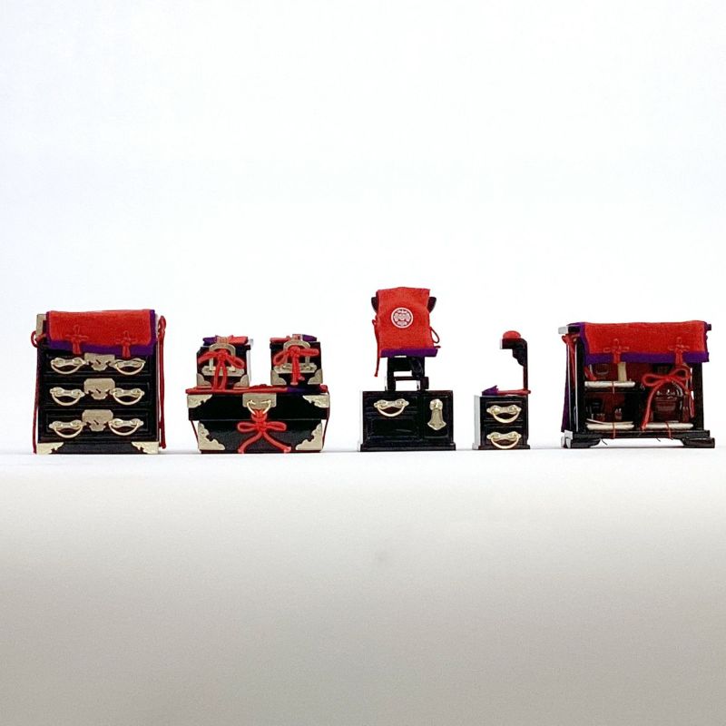 七段十五人飾りによくセットされている嫁入り道具を五人飾りにセットしました。
