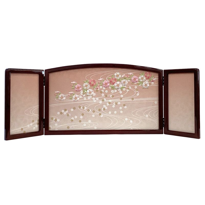 ・屏風:ワイン色桜花柄