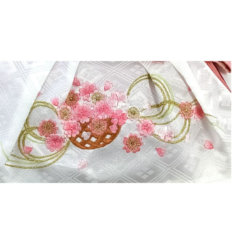 男雛女雛の衣裳の金襴は同じ柄を違う色目で仕上げました。三人官女にはピンク地の可愛らしい金襴を着せ付けました。