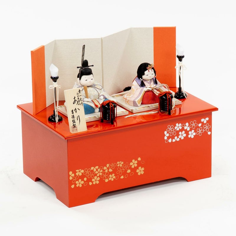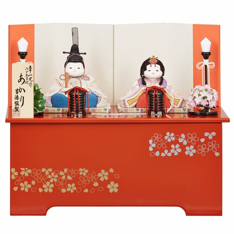 ふっくらとしたお顔がとても愛らしい幸一光作、木目込み人形親王収納箱飾りです。