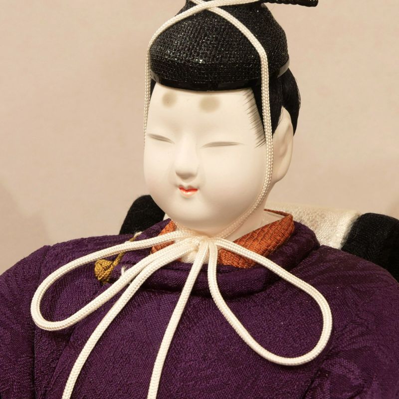 ■男雛の衣裳には高貴な色とされる「紫」の正絹裂地を用いました。