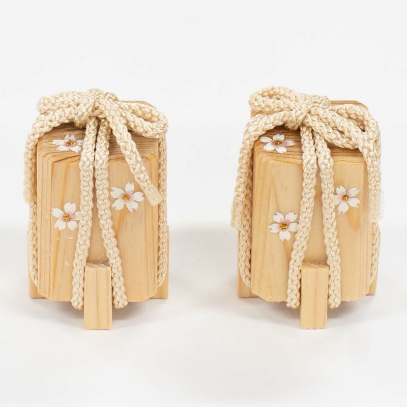 ■木製の「桜」を描いた行器(ほかい)を可愛らしい人形の前に配しました。