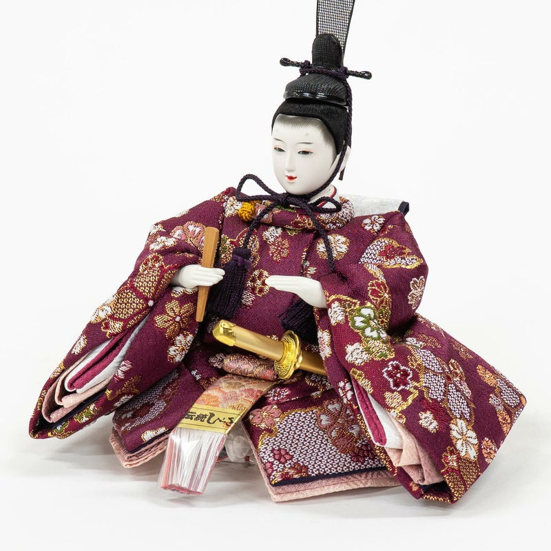 ■色鮮やかな紫色の衣裳が印象的な男雛。