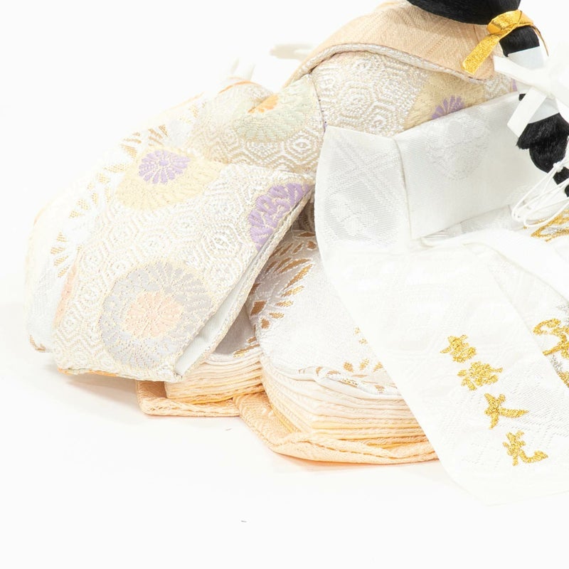 ■菊の丸文様を織り出した衣裳を着せ付けました。