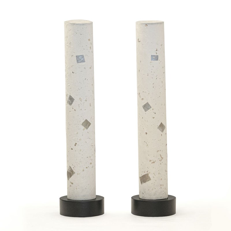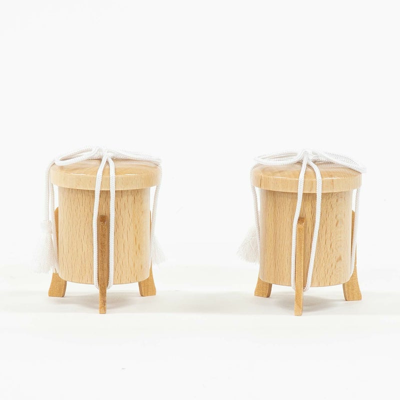■お人形の両サイドには円柱型の和紙スタンドをセット。電池式で明かりがともります。