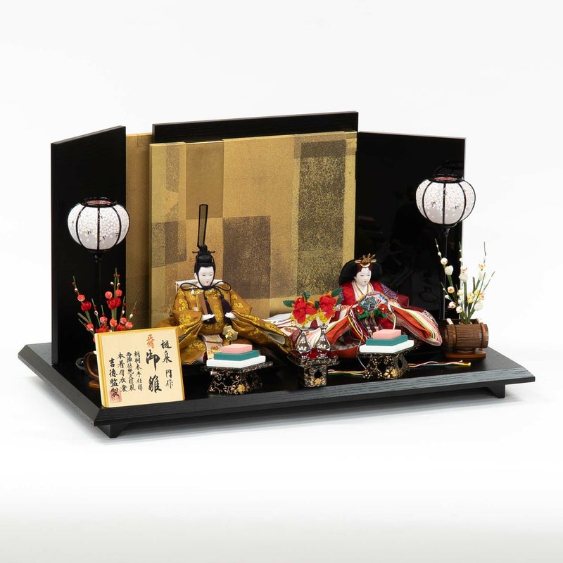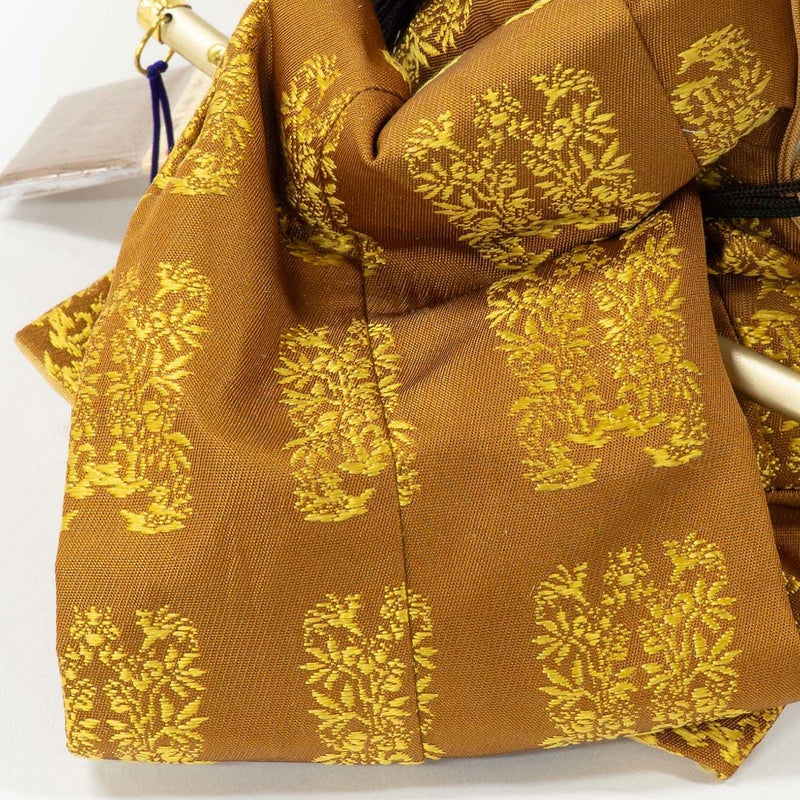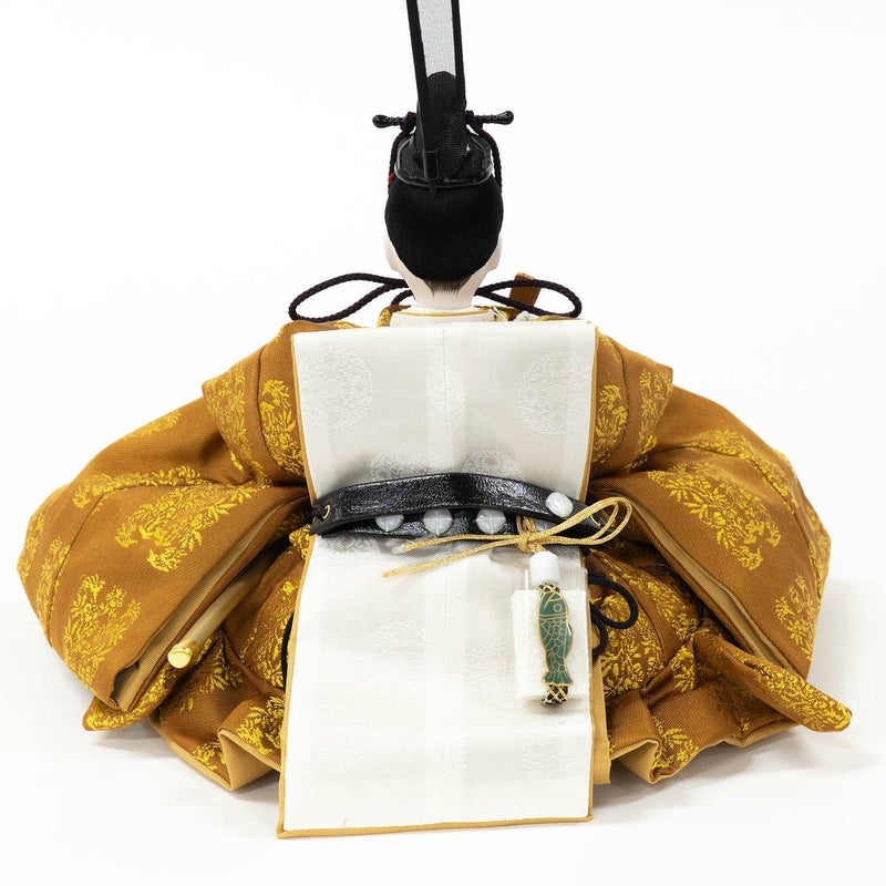 ■男雛には天皇のみが着用される“黄櫨染桐竹鳳凰文(こうろぜんきりたけほうおうもん)” の御装束を写した正絹裂地を本式に仕立て丁寧に着せ付け