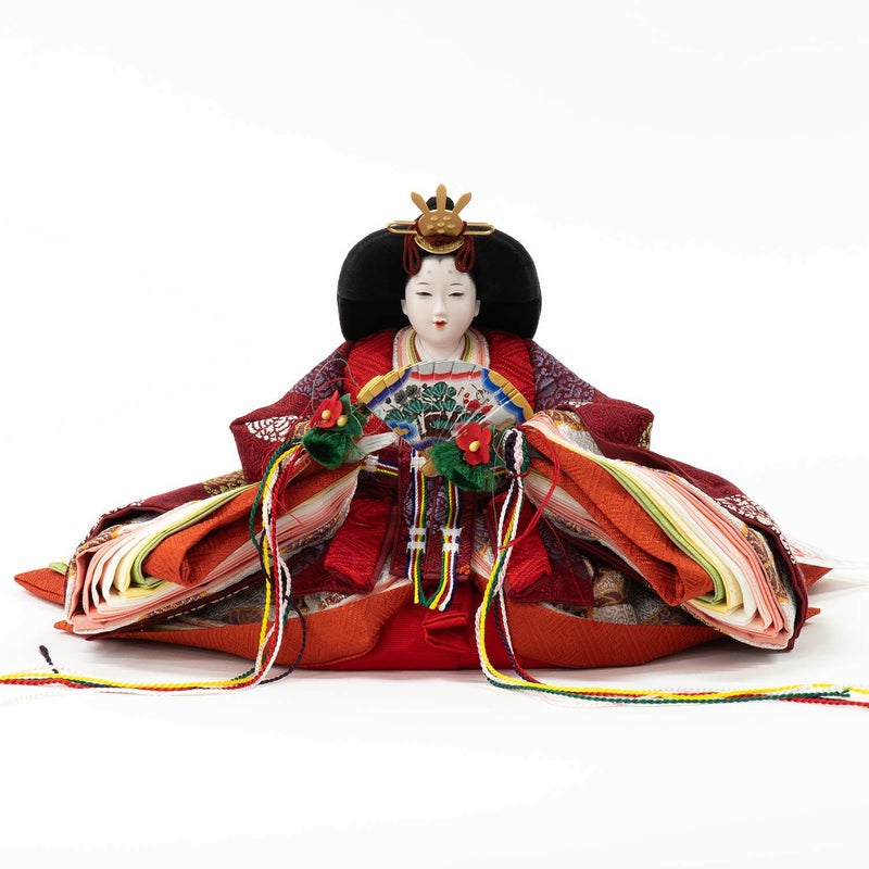 ■女雛は深みのある色合いの正絹衣裳を着せ付け。