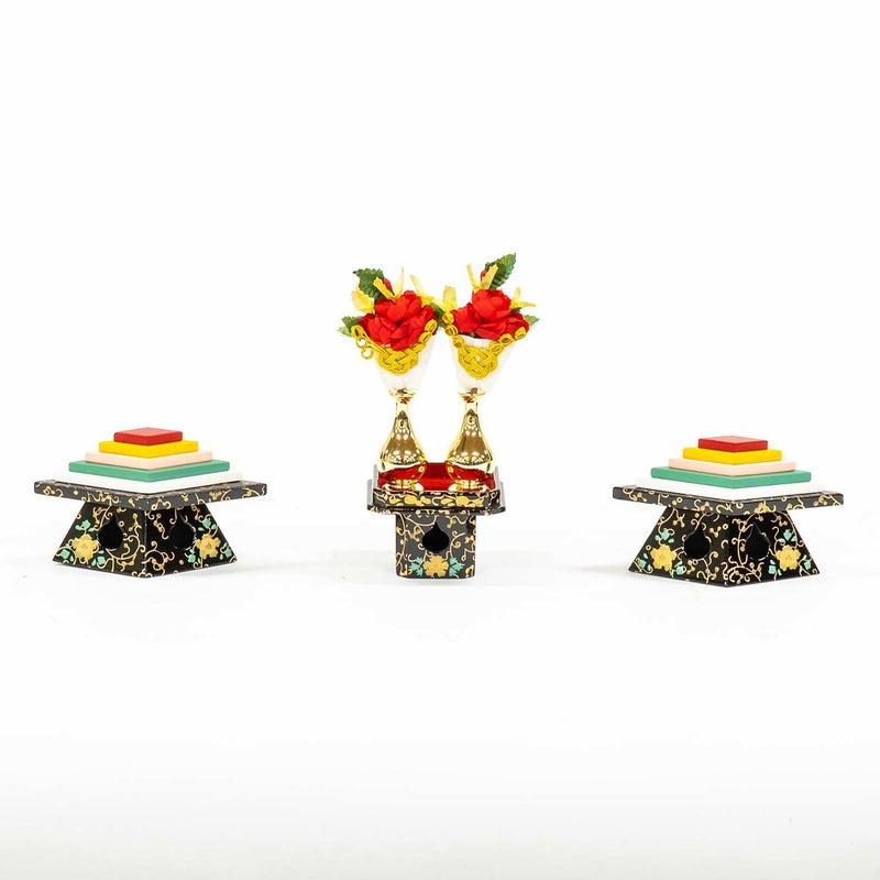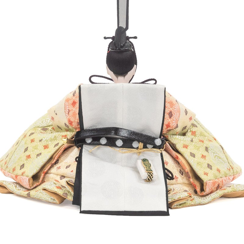 男雛の平緒と女雛の裳は糊付けされず、実物と同様に取り外すことができます。
