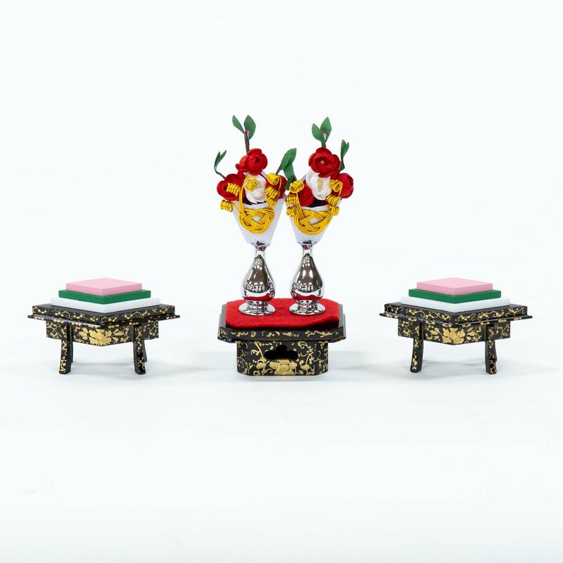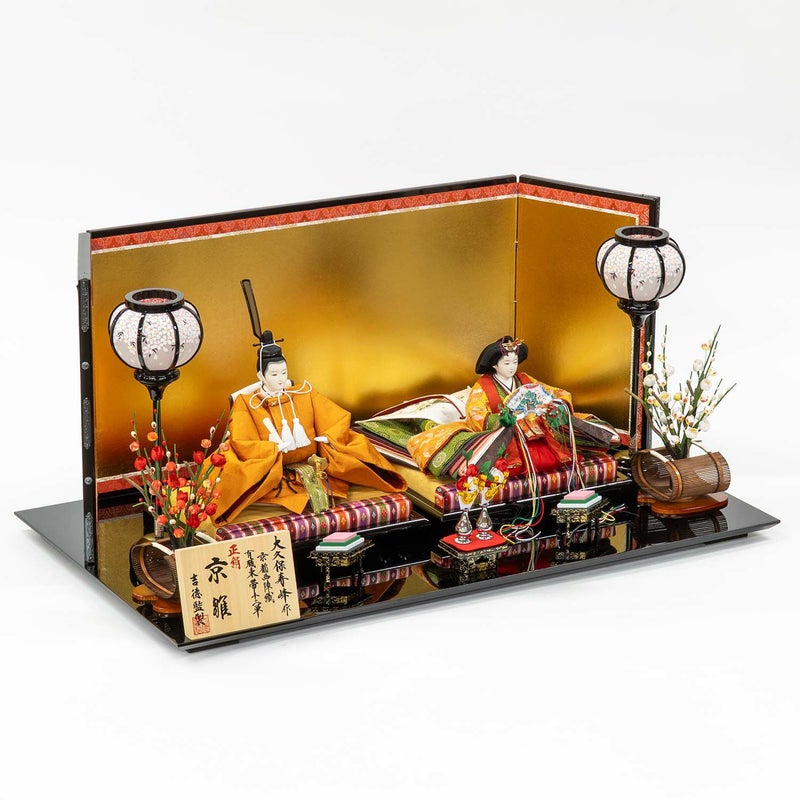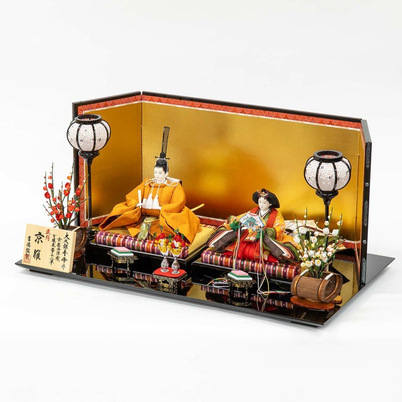 ■風格漂うお人形が引き立つように箔押しの金屏風を用いました。