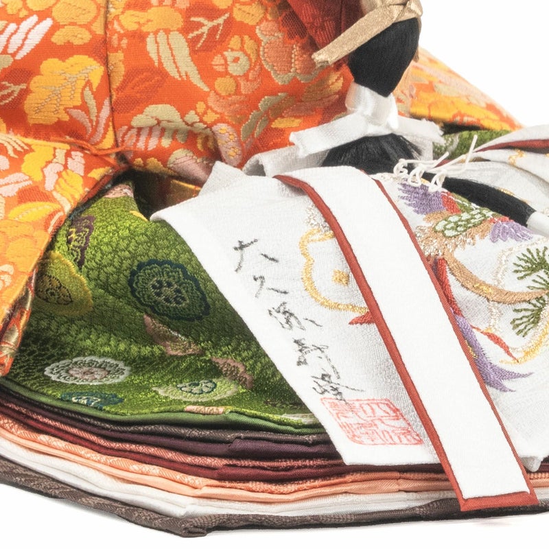 ■女雛の裳には、京人形司・大久保寿峰の名を記しました。