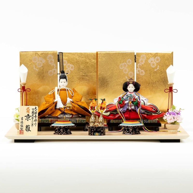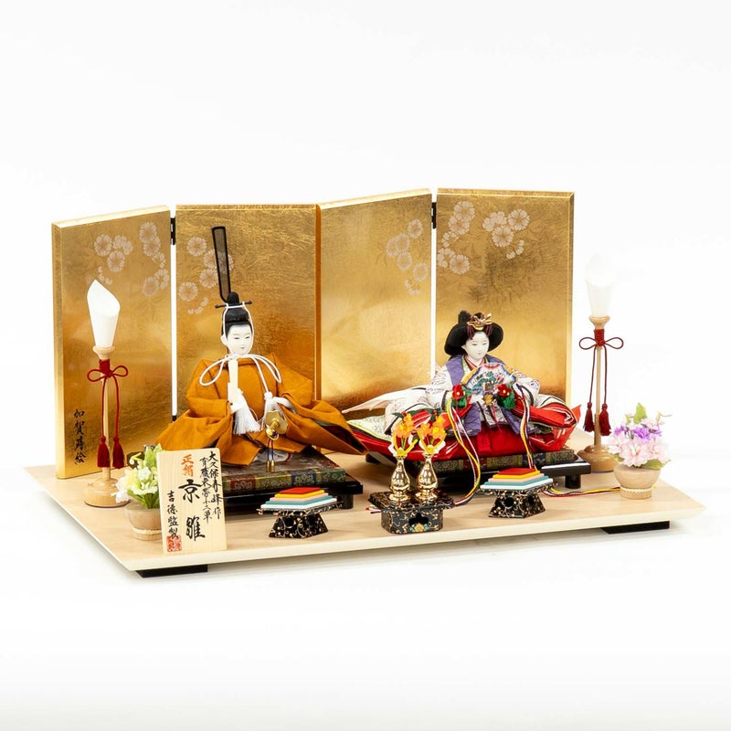 天皇、皇后両陛下が「即位礼正殿の儀」にて着用された御裳束を参考にした大久保寿峰作の親王飾りです。