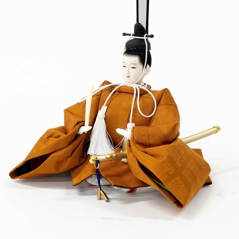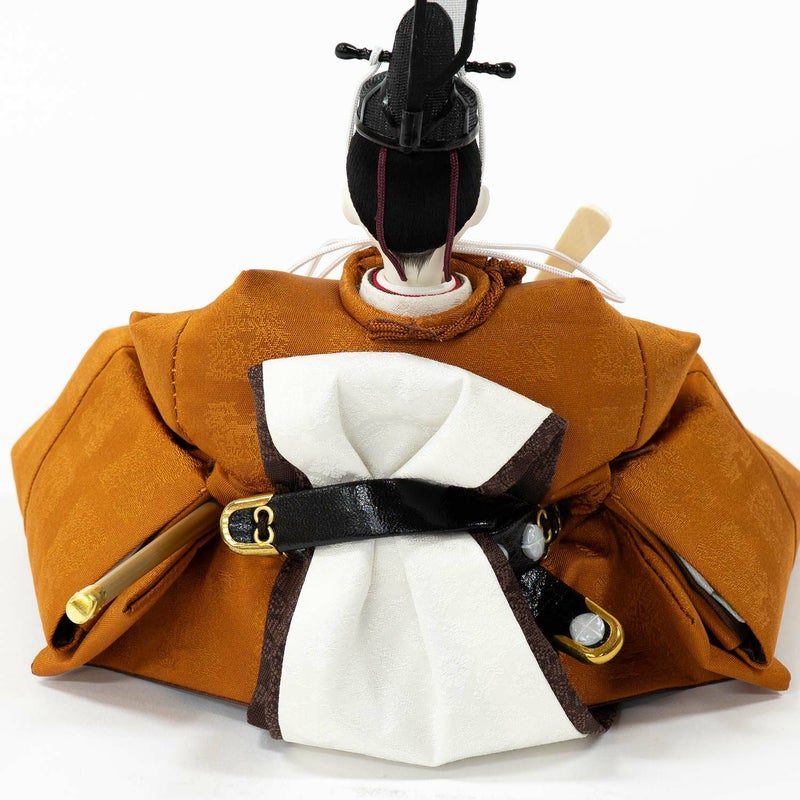 ■男雛は天皇陛下のみが着用される黄櫨染桐竹鳳凰文(こうろぜんきりたけほうおうもん)の正絹衣裳を着せ付け。