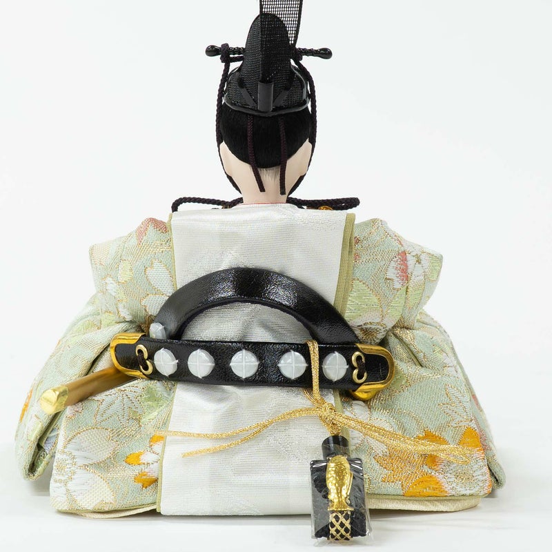 ■男雛は若草色に桜を織り出した衣裳を着せ付け。