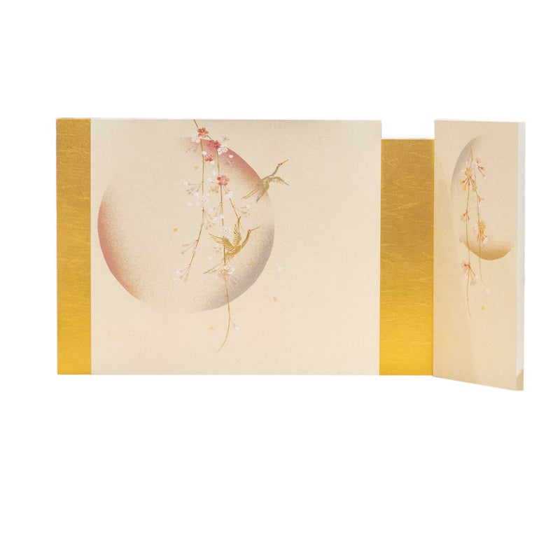 ■屏風は淡いピンク地に桜と長寿の象徴「鶴」を描きました。