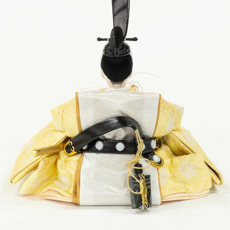 色鮮やかな黄色の衣裳が印象的な江都みやび親王飾りです。
