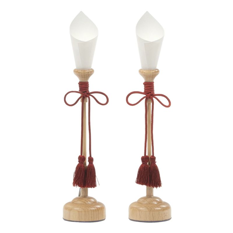 ■燭台は木肌色のコードレスタイプの電池式で、明かりがともります。