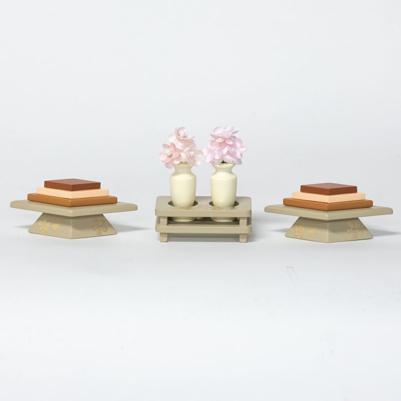 ■全体のカラーに合わせた優しい色合いの菱台に三方をセット。