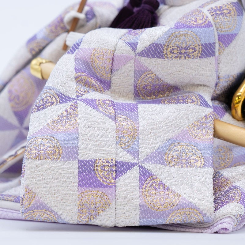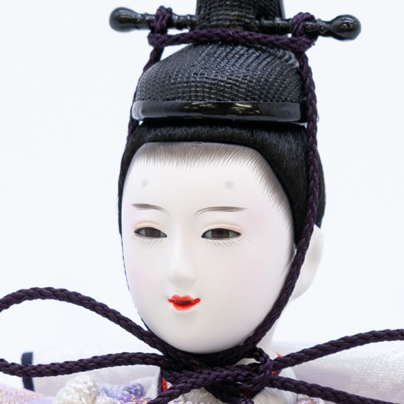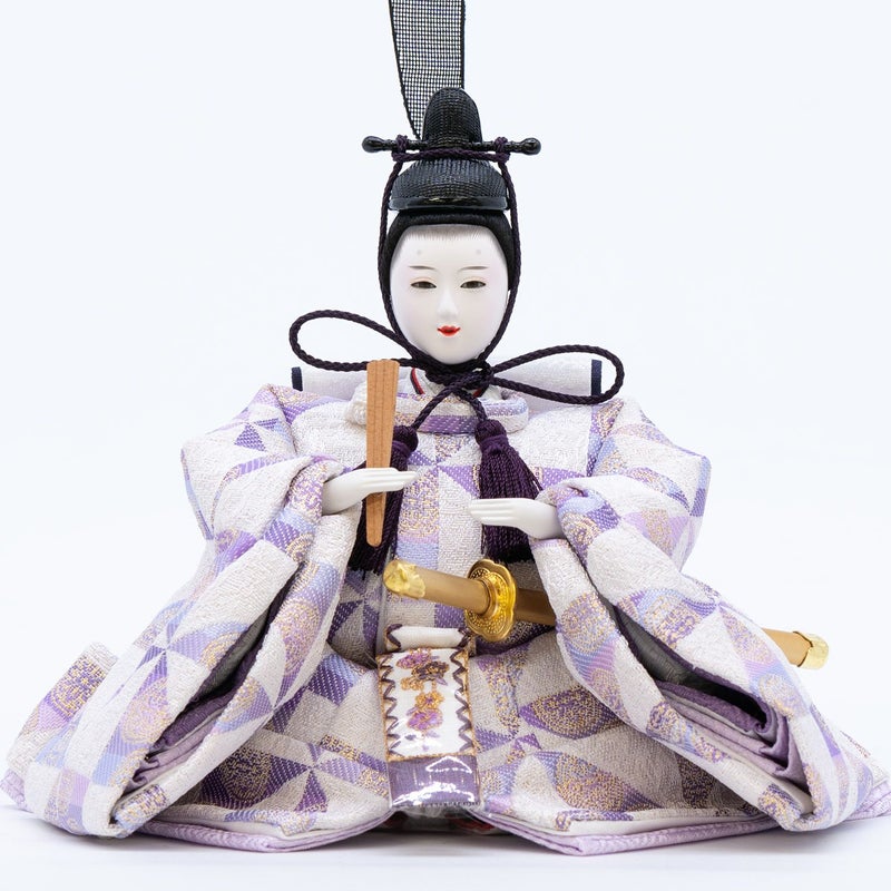 ■三角形が交互に表現された鱗形文様の淡い紫色の衣裳を纏った男雛。