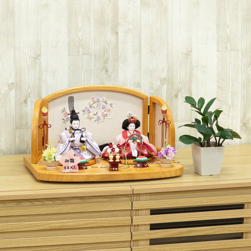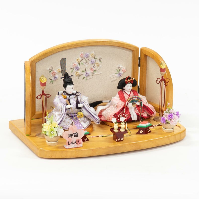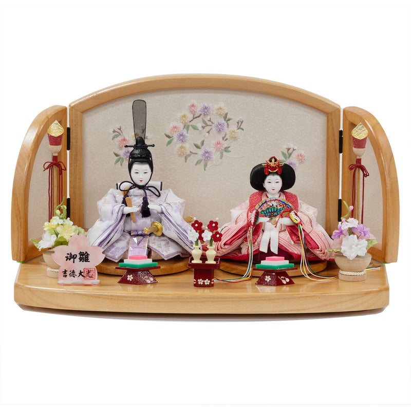 ■幅40㎝とコンパクトサイズな可愛らしい親王飾り。