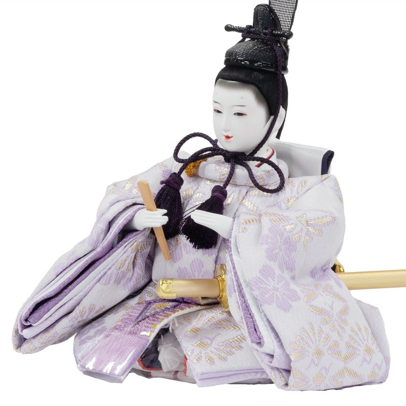 ■男雛は淡い紫色に唐花を織り出した衣裳を着せ付け。