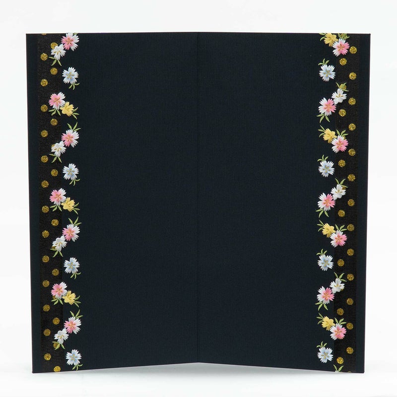 ■屏風に描かれた色鮮やかなお花の刺繍が、春の訪れをお祝いするかのような華やかな雰囲気を演出。