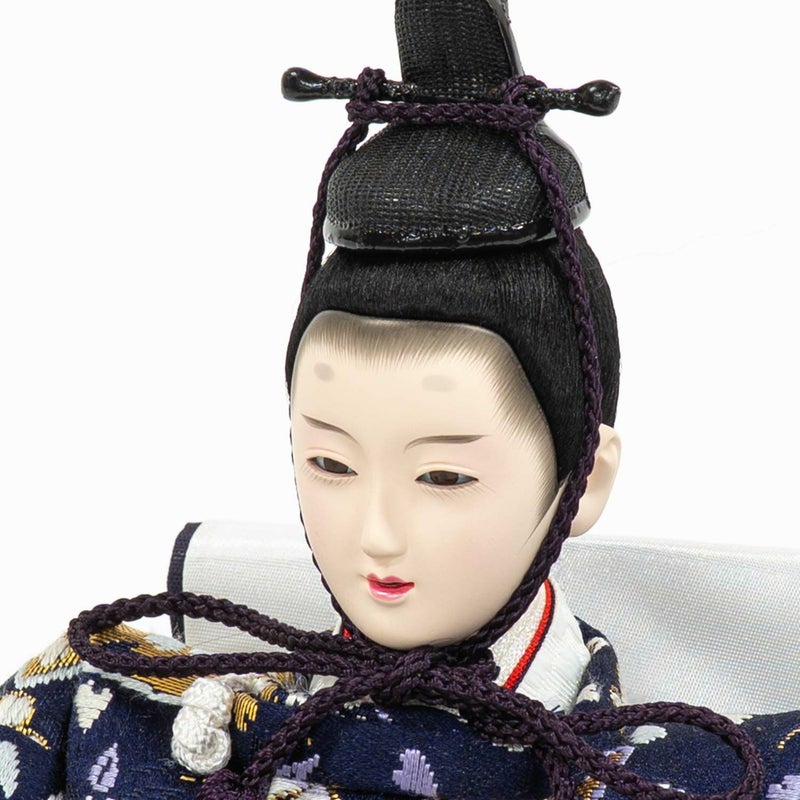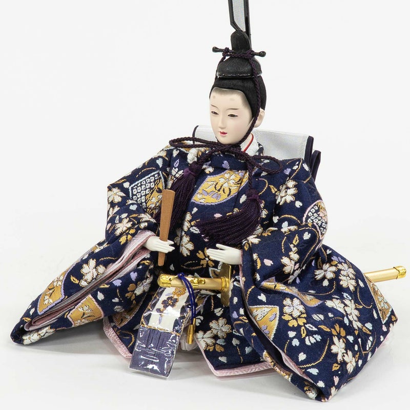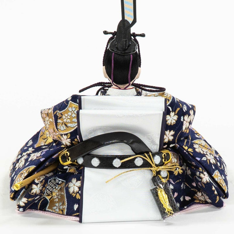 ■男雛には紺地に桜柄の衣裳を着せ付け。
